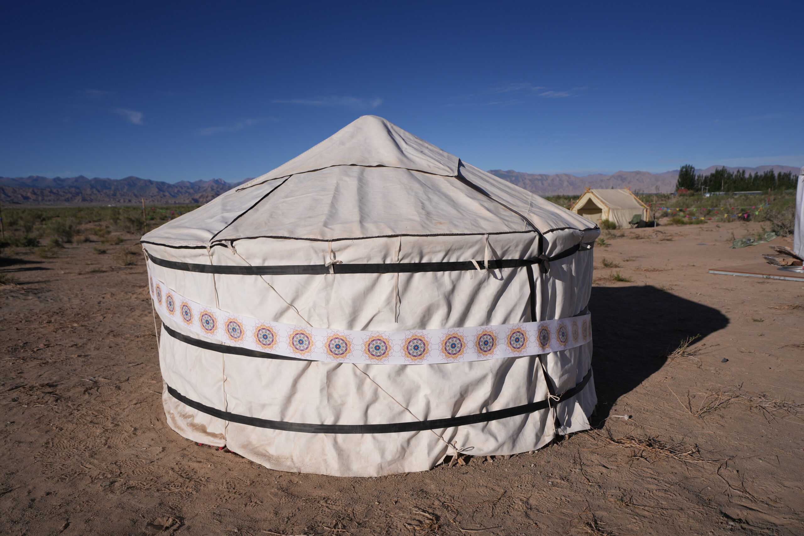 当蒙古包完全成型,伫立在金色沙地上,四周是连绵山脉与广阔天空。学生们退后几步,看着自己的作品,很难不感到一种来自身体与土地同步的成就感。